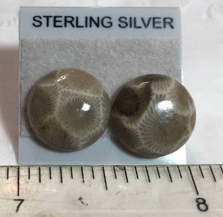 Petoskey Stone Round Earrings SS Posts Michigan 12 mm